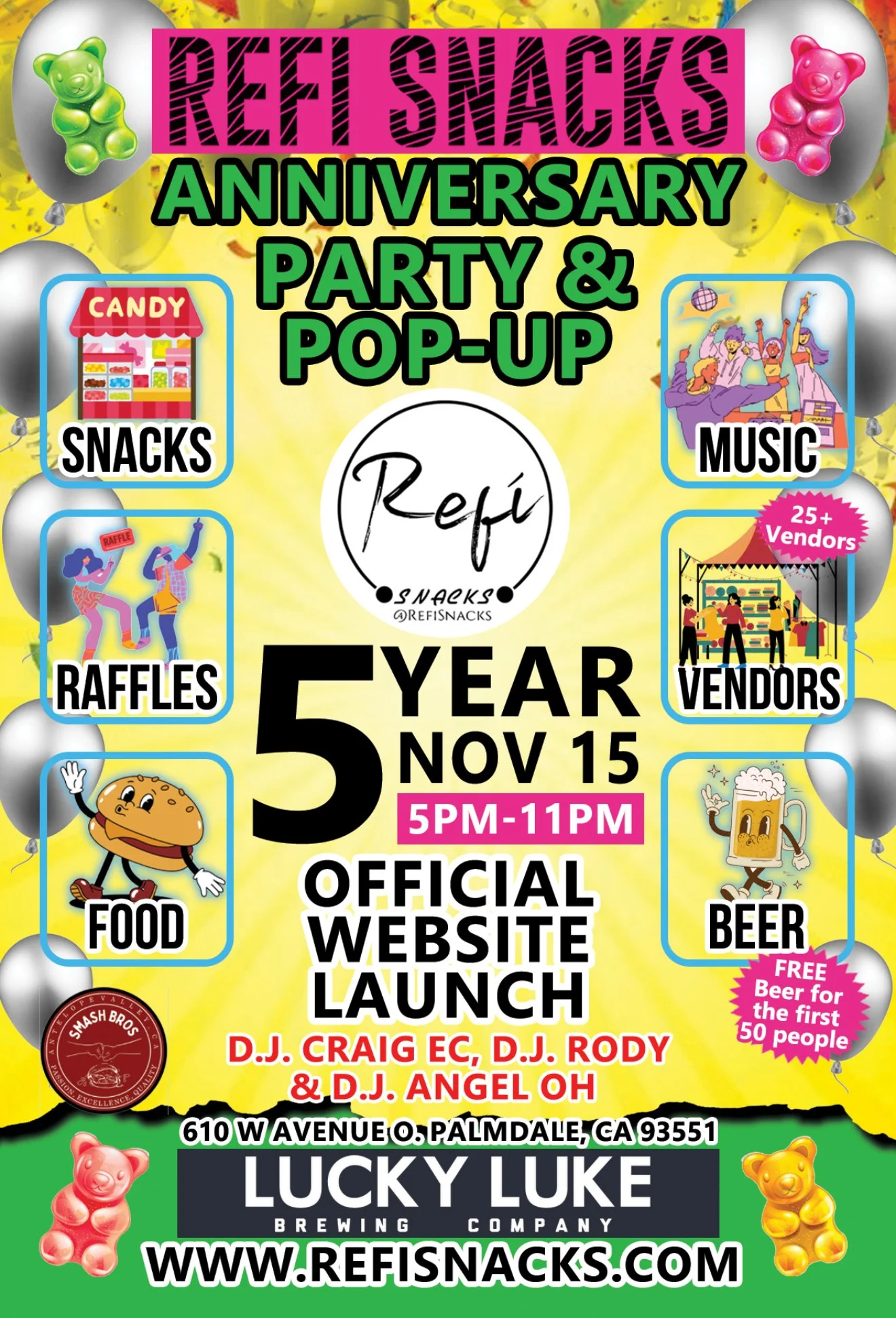 Nov 22 2:00 PM14:00 Refi Snacks Anniversary Vendor Pop-up Saturday, November 22, 2025 2:00 PM 8:00 PM 14:00 20:00 Google Calendar ICS View Event →